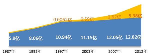 從每年來看,電視受眾的規(guī)模高達12.82億,接近100%,這么大的規(guī)模,是任何其他媒體不能比擬的。截至2012年底,互聯(lián)網(wǎng)的受眾規(guī)模只有5.38億,只有電視受眾規(guī)模的42%,不到一半。在互聯(lián)網(wǎng)受眾中,網(wǎng)絡(luò)視頻用戶只有3.89億,只有電視受眾的30%,不到三分之一。每天在家看電視的人數(shù)占人口總數(shù)的80.7%,超過10億人;而每天在家上網(wǎng)的人數(shù)只占23%,只有2億多人。